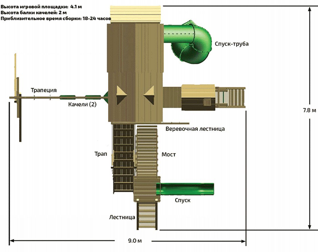 Игровая площадка Орион 1 идеально подходит для больших семей, где дети и взрослые любят активный и увлекательный отдых. Детскую площадку производят из красного дерева (секвойи) и кедра. Многоуровневый комплекс, оснащенный горками, качелями, лестницами, домиками, позволит малышам и их друзьям организовывать любые игры: от спортивных до сюжетных. Деревянная детская площадка Орион 1 подарит вашим детям бесконечные возможности для интересного и полезного времяпровождения. Площадка рассчитана на детей от 3 до 11 лет.