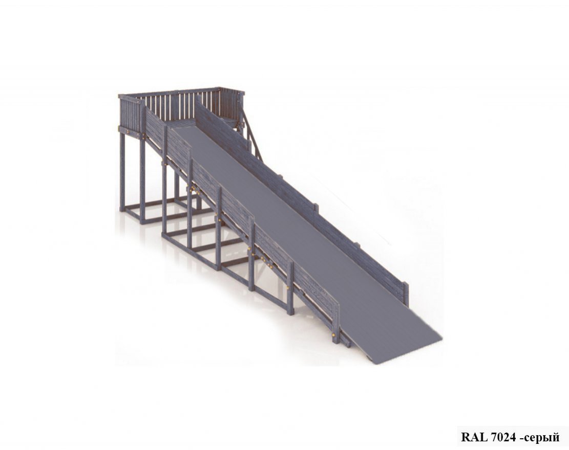 Зимняя горка Морозный простор 3 изготовлена в соответствии с ГОСТ Р 52168-2012. Опоры и несущие элементы изделия изготовлены из клееного бруса карельской сосны 90х90мм, 60х90мм, доска 45х90мм, 45х140мм, другие перекрытия 20х90мм доска, ограждение и иные элементы из массива сосны. Везде используется сухая доска.