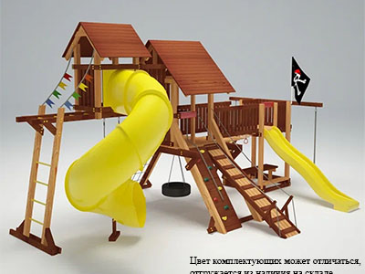 Площадка Галиот 14 обладает довольно широким функционалом (который по желанию можно легко расширить). А на качелях могут кататься даже родители! Детская площадка предназначена для дачи, коттеджа.