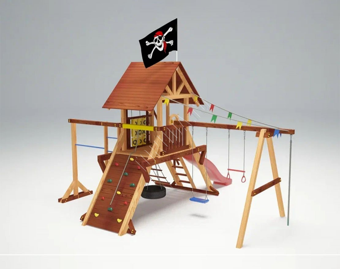 Площадка Галиот 2 обладает довольно широким функционалом (который по желанию можно легко расширить). А на качелях могут кататься даже родители! Детская площадка предназначена для дачи, коттеджа.