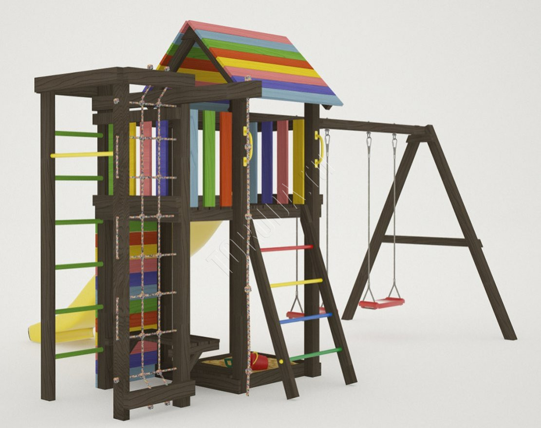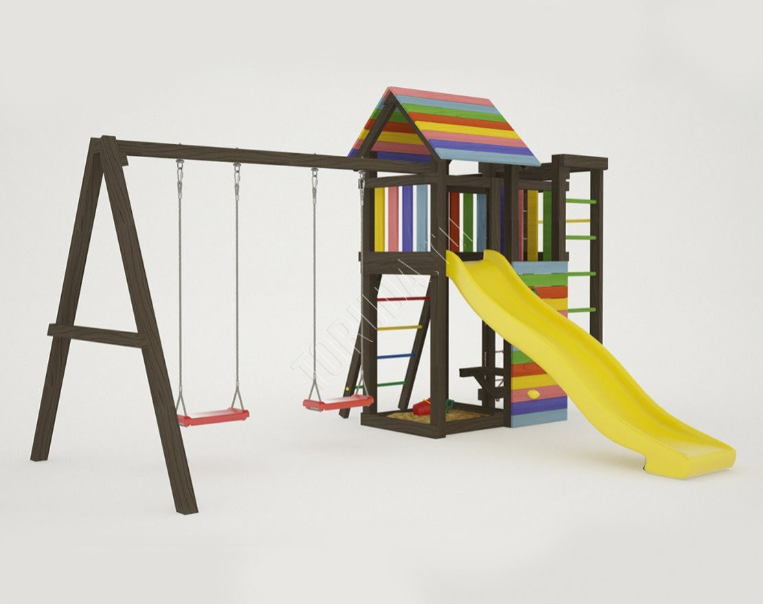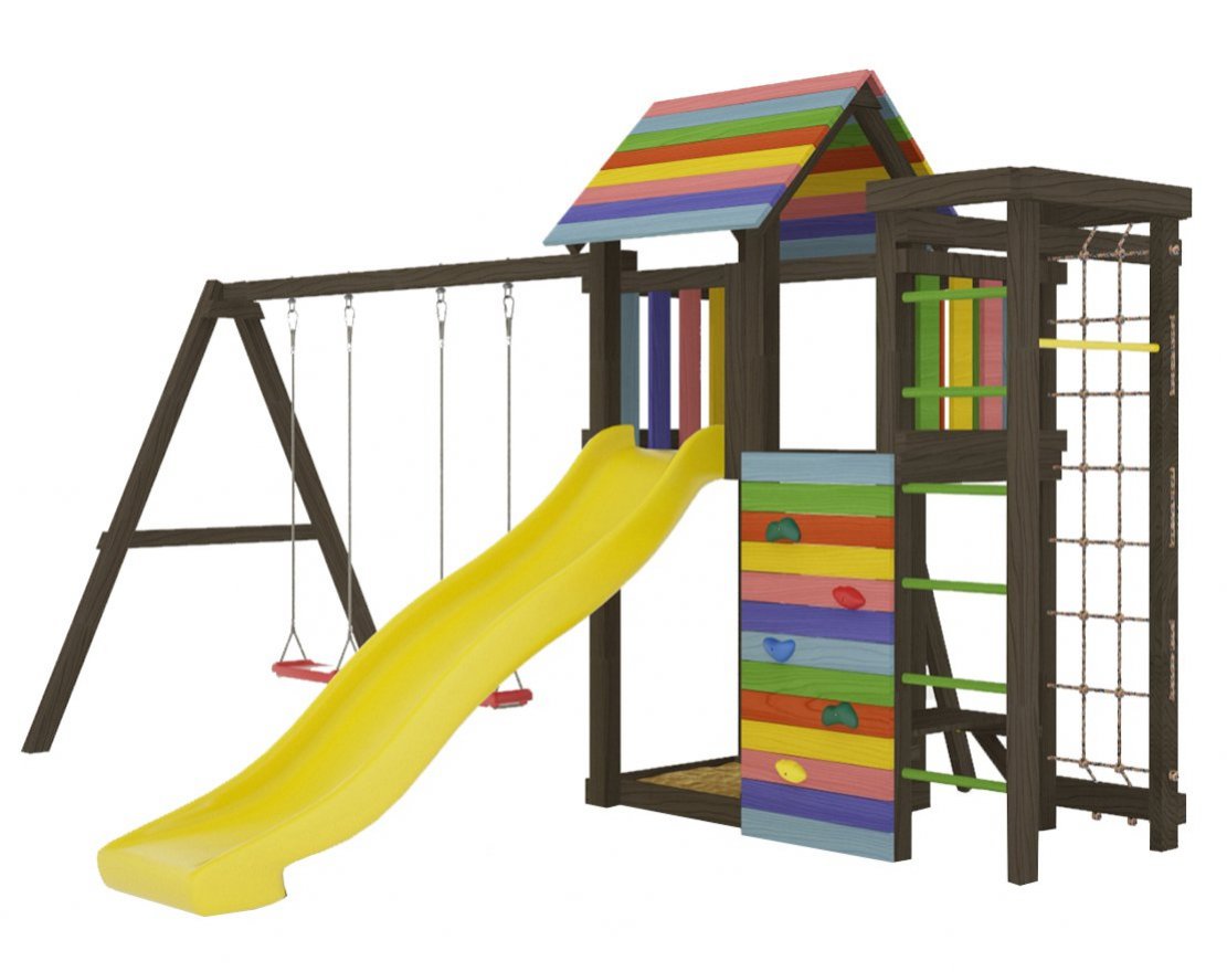 - Это универсальное решение для активного досуга и позитивного настроения непосед с трех лет. Комплекс безопасен – конструкция, качество древесины и подвижных элементов соответствуют ГОСТ. Основным материалом является экологичный клееный брус, балки которого отшлифованы и имеют закругленные края.