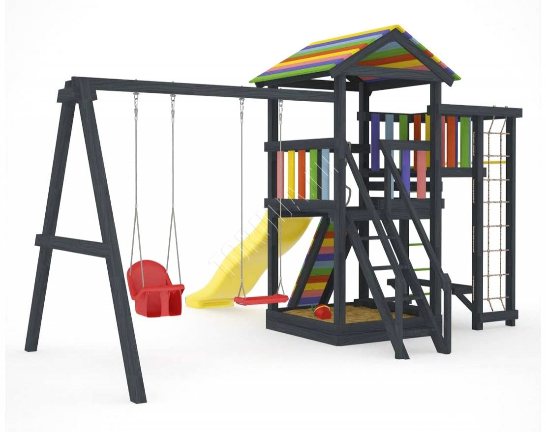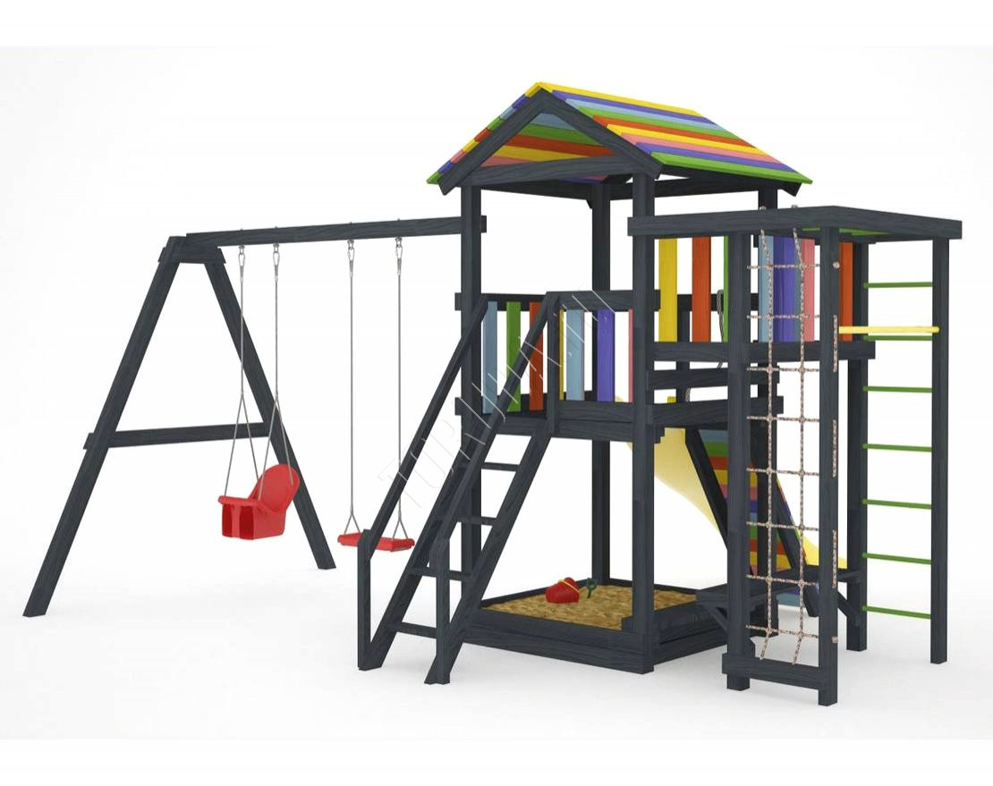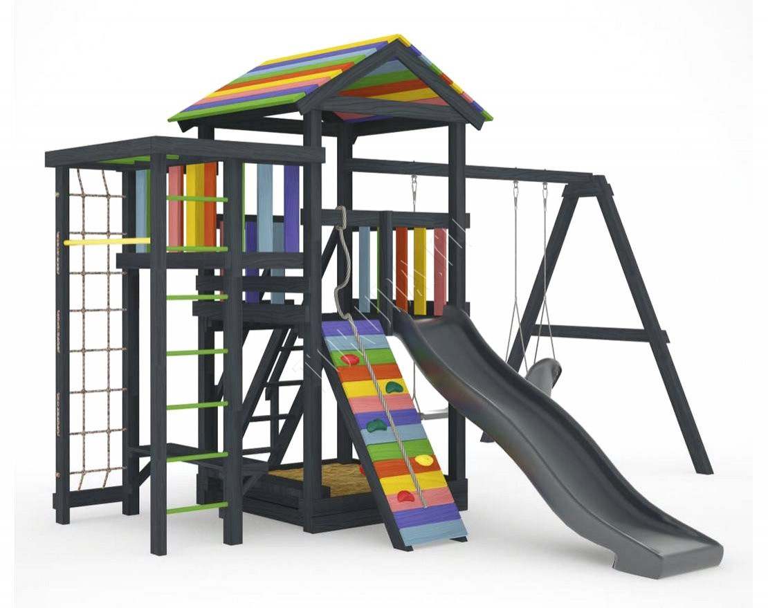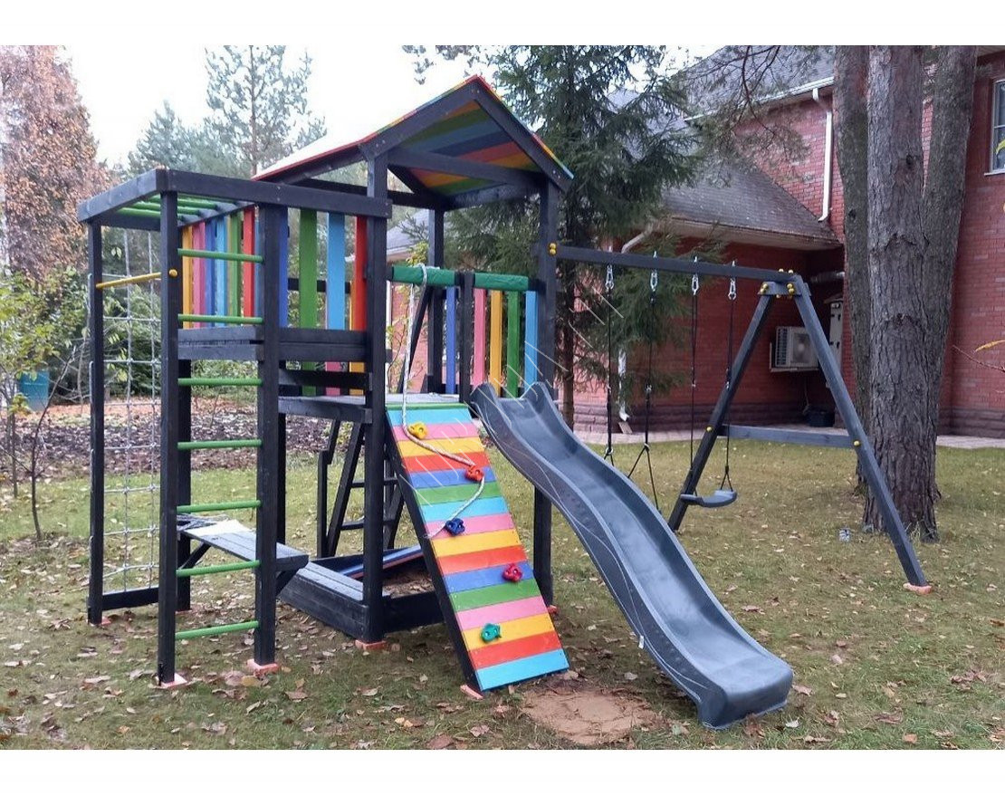 Детская площадка обладает довольно широким функционалом, предназначена для дачи, коттеджа.