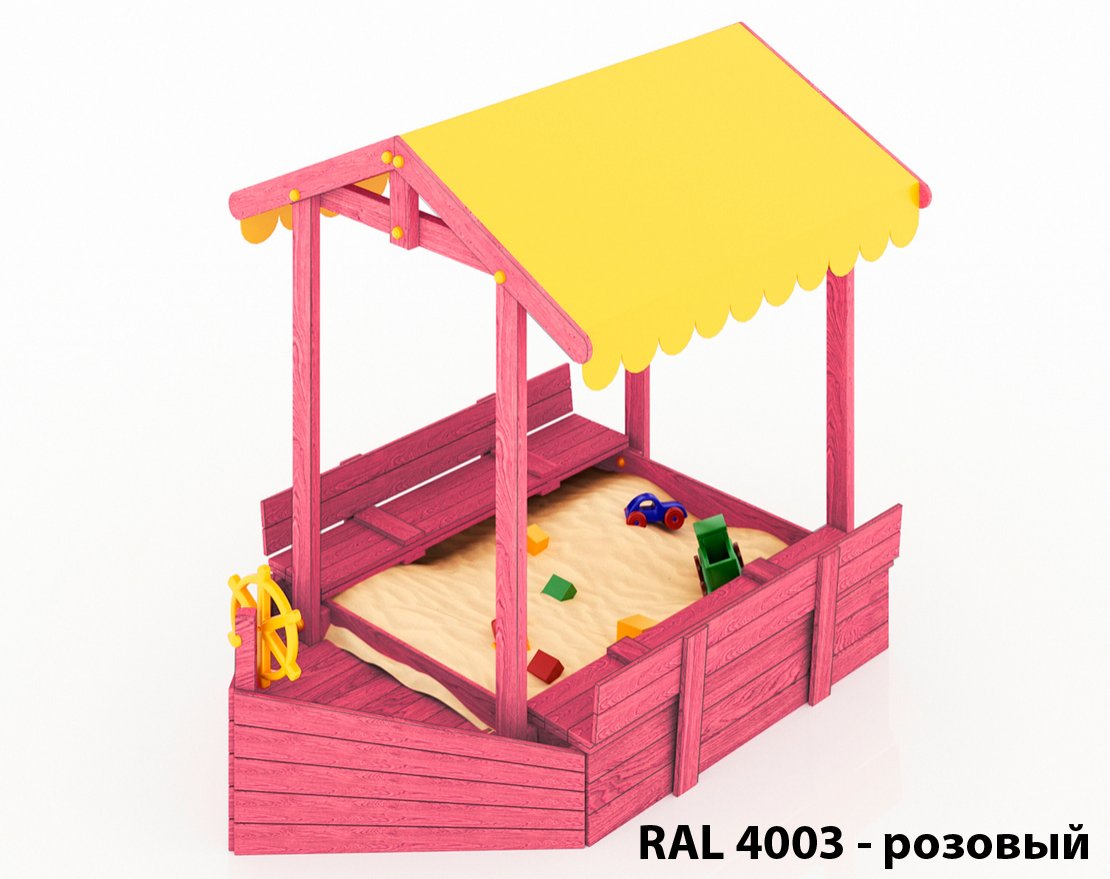 Детская складная песочница-кораблик с крышей, скамейками-лавочками и со штурвалом.
