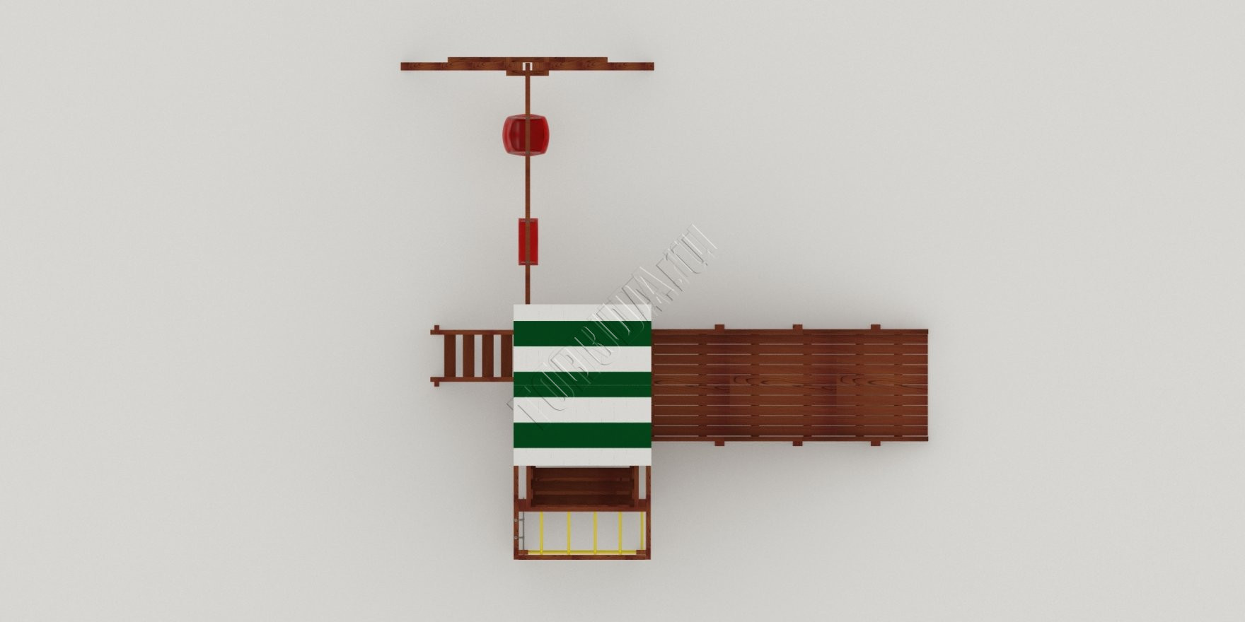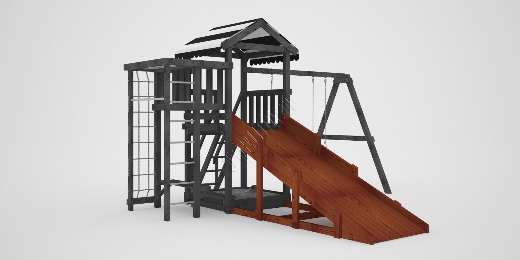 Конструкция сертифицирована и безопасна. Крепежи скрыты под хорошо закрепленными заглушками – поэтому даже малыши не поранятся. Каркас состоит из натуральных деталей – клееного бруса квадратного сечения со стороной 75 мм. Во избежание получения заноз и ссадин дерево отшлифовано, а края скруглены.