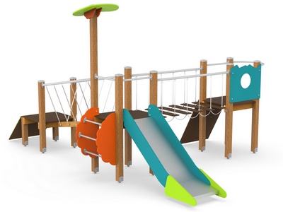 Детский комплекс предназначен для организации детского досуга и физического развития на детских площадках, в детских садах, школах, парках, дворах и местах отдыха. Изделие представляет собой сборно-разборную конструкцию с декорациями из фанеры ФСФ, с повышенными свойствами по водо - и износостойкости.