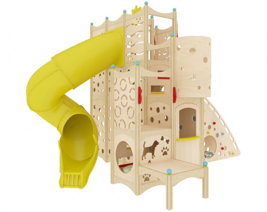 Данную модель под названием IgraGrad 13 устанавливают не только в квартире, но и в таких общественных учреждениях, как: кафе, ресторан, детсад, парк. Детишки будут в восторге от времяпрепровождения на территории этого замечательного домика из экологически чистой фанеры.