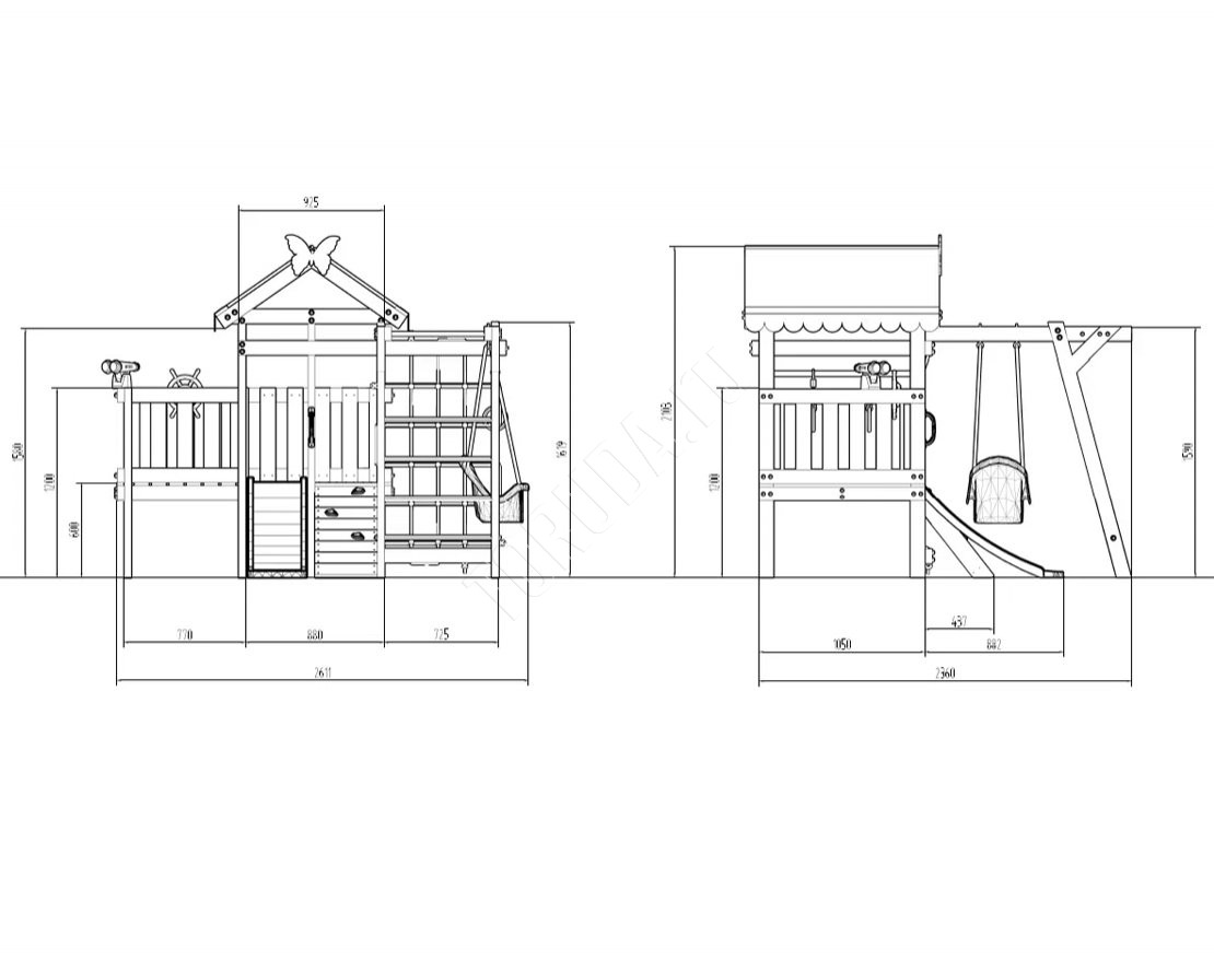 Эта игровая площадка разрабатывалась специально для загородного дома и квартиры. Комплекс интересный и безопасный для ваших детей.