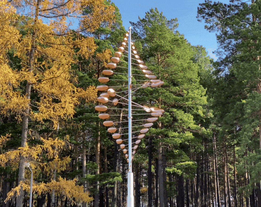 Торнадо - это динамичная и воздушная скульптура, призванная передать мощь и элегантность природного явления. Скульптура состоит из вертикальной стойки, служащей ее основой и точкой опоры, и множества круглых пластин, расположенных по спирали вокруг нее.