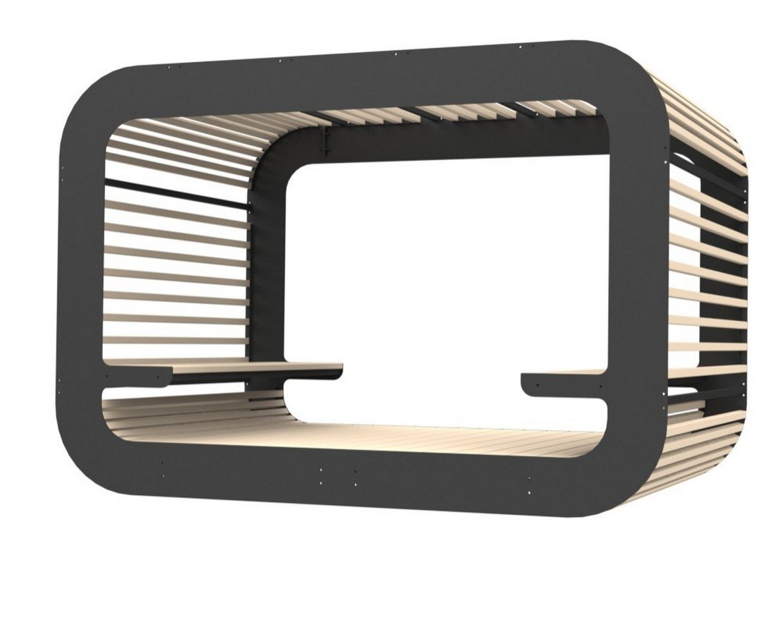 Парковый навес на металлическом каркасе с использованием натурального дерева (лиственницы). Устанавливается в парках, скверах, придомовых территориях и др.местах общественного пользования.