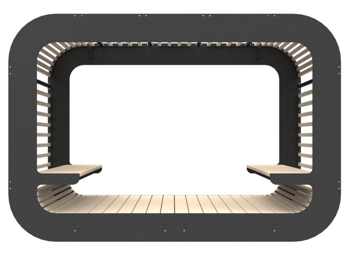 - Деревянные элементы: доска из лиственницы 1 сорта. Поверхность покрывается специальным паропроницаемым натуральным маслом Luna. Масло Luna защищает дерево от атмосферного воздействия, растрескивания, выгорания, поражения грибком, синевой и плесенью.