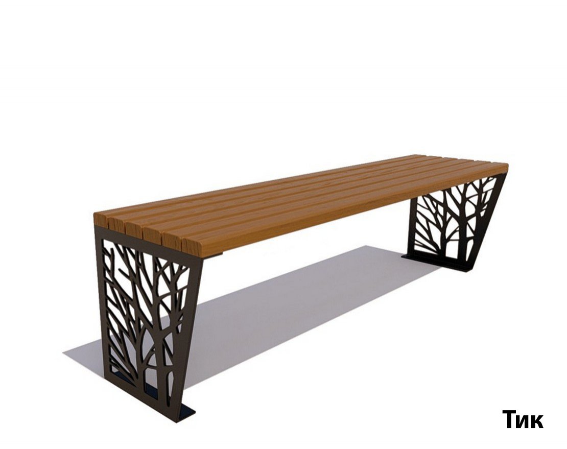 Банкетка «Роща» станет украшением любого парка или сквера. Стальные боковины изделия украшены рисунками, сделанными лазером, в виде веток деревьев, что позволяет гармонично вписаться в интерьер.