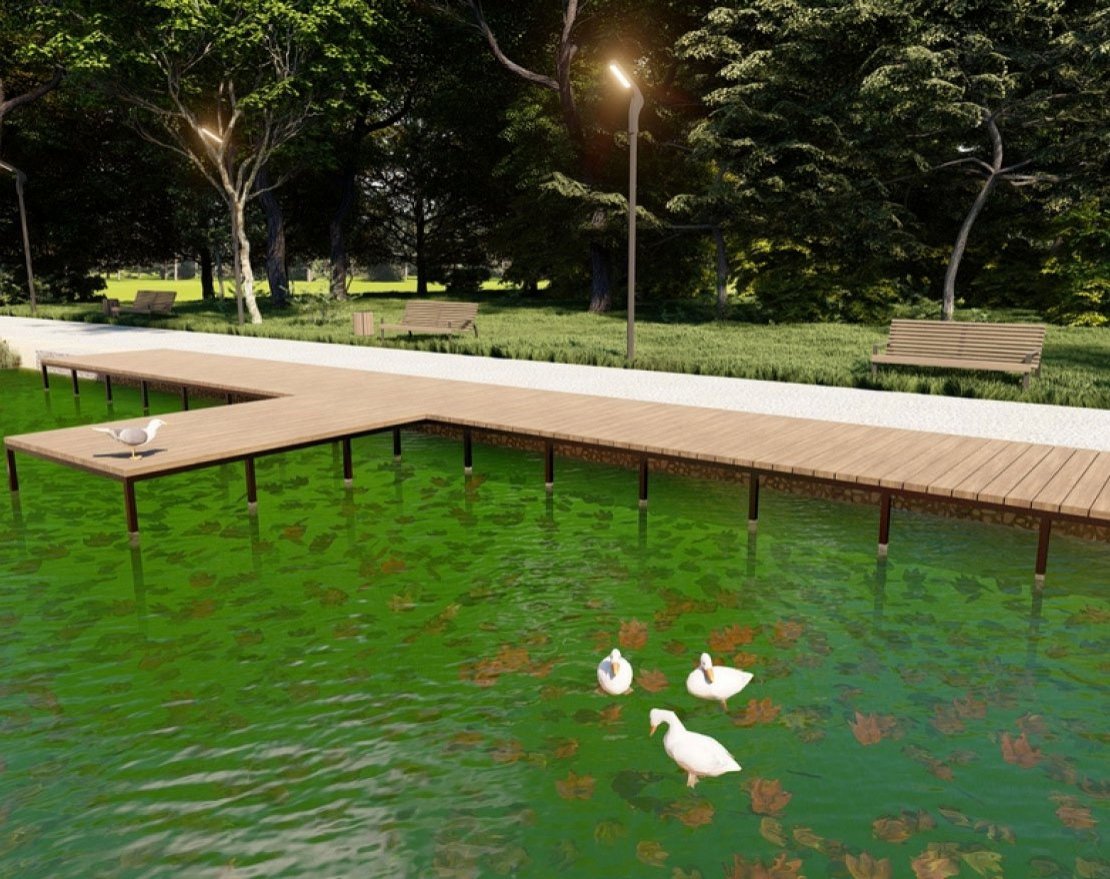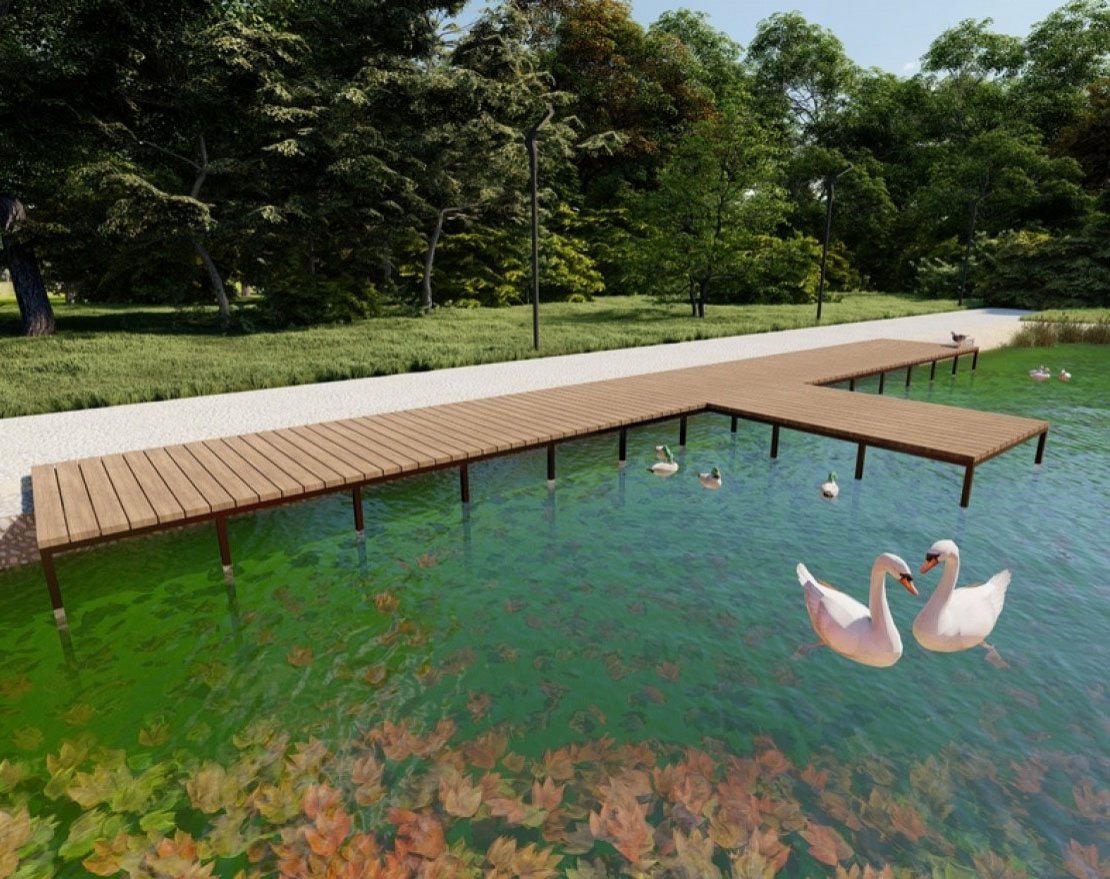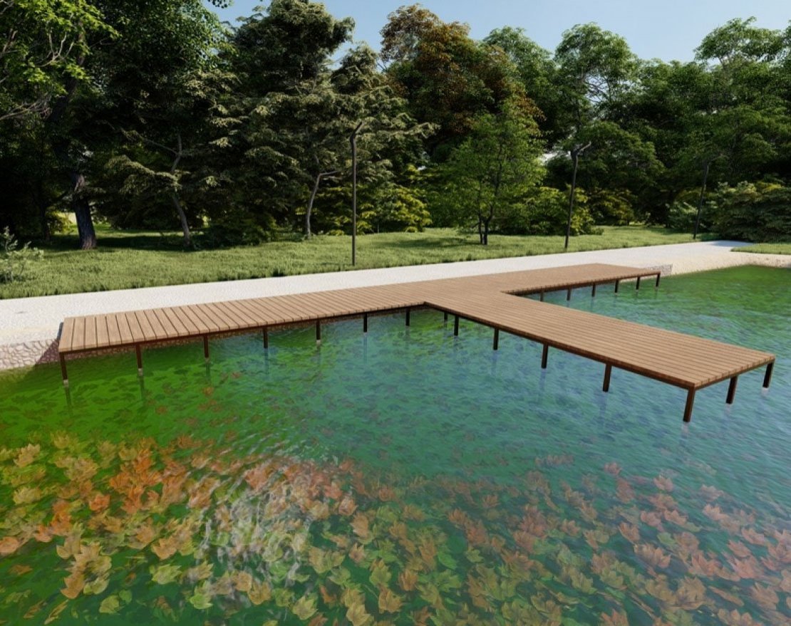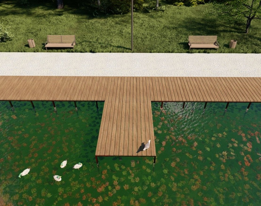 Пирс будет укреплен сваями, что обеспечит его стабильность и прочность.