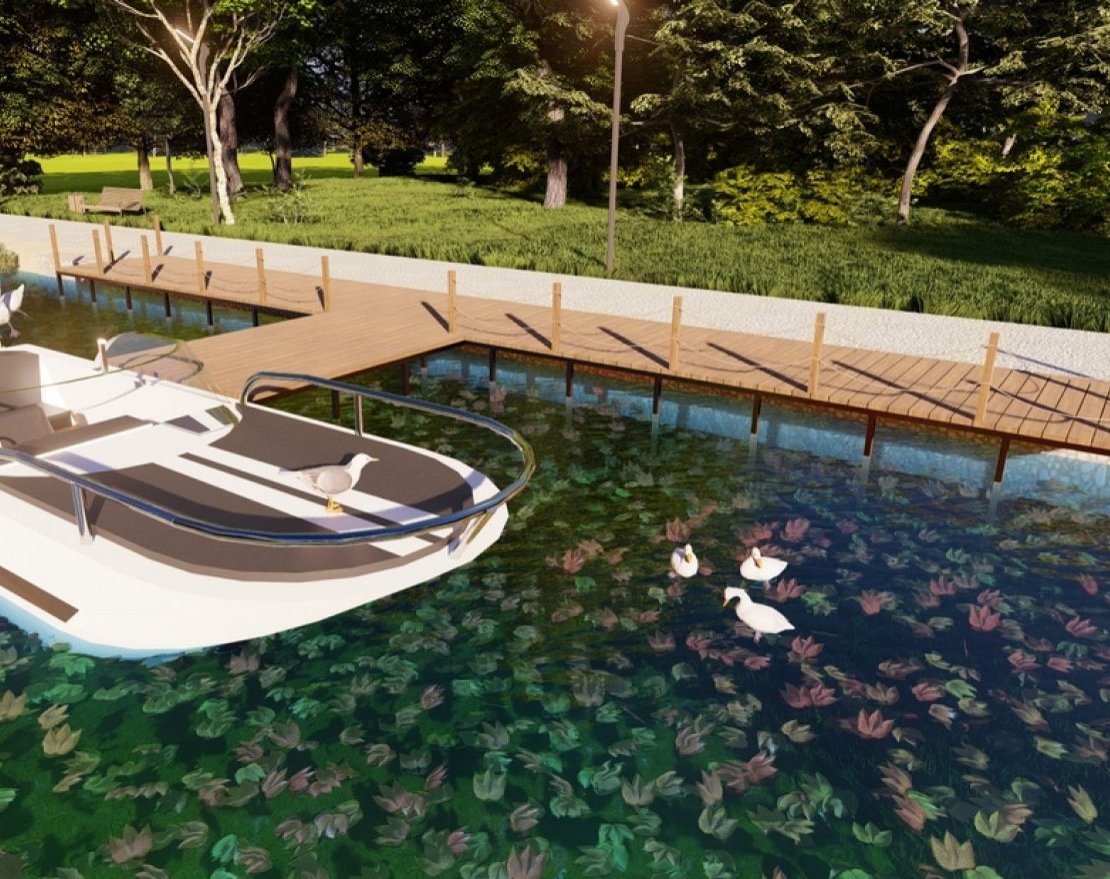 Пирс будет укреплен сваями, что обеспечит его стабильность и прочность.