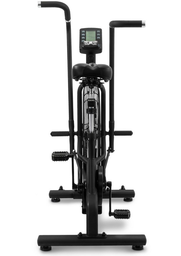 Эйрбайк VictoryFit VF-AirBike GT. Нагрузка обеспечивается за счет воздушного сопротивления. Предусмотрена регулировка сидения, как по высоте, так и в горизонтальной плоскости, под любой рост пользователя. На мониторе отображается информация о затраченных калориях, пройденной дистанции, времени, скорости. Занимающийся может использовать только силу ног, вращая педали или силу рук. Для более интенсивной кардио-тренировки можно совмещать движения рук и ног. Педали вращаются и в обратном направлении, для того, чтобы задействовать различные группы мышц.