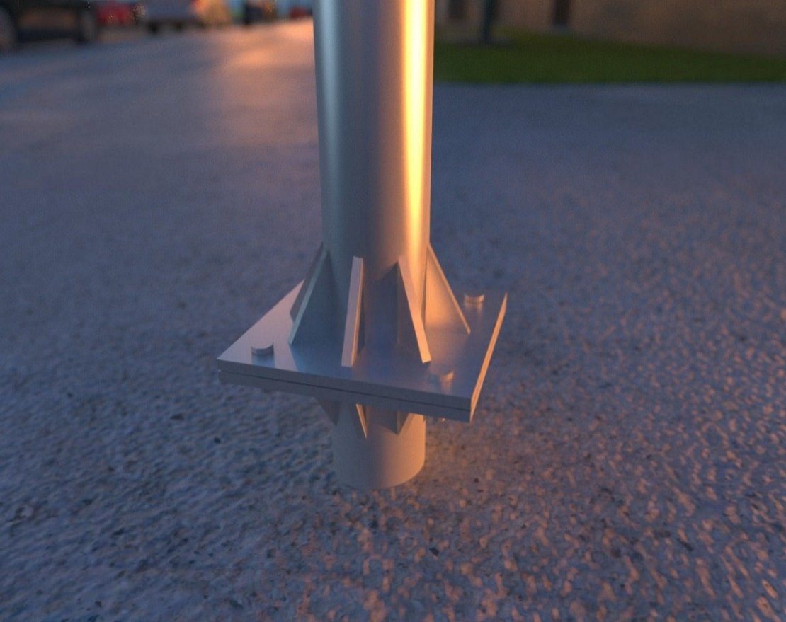Верхняя часть опоры оснащается кронштейном, который крепится с помощью стальных шпилек. Кронштейн может иметь от 1 до 4 рожков, что позволяет устанавливать различное количество светильников.