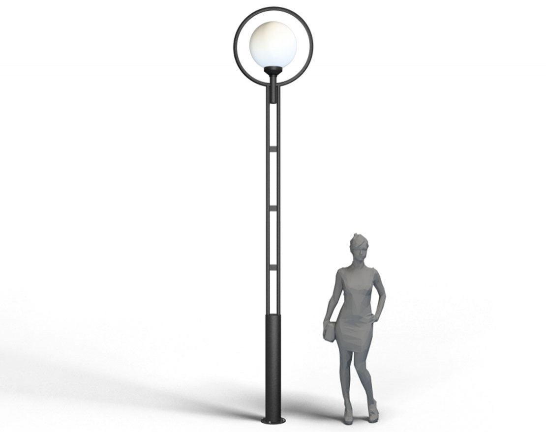 Производится путем бетонирования закладной детали (в комплект поставки не входит) с последующим креплением к ней стойки фонаря болтовым соединением.